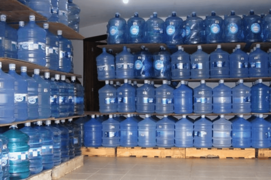 - Galões higienizados e lacrados